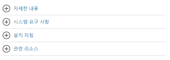 또한, 페이지 아래에 있는 '자세한 내용 / 시스템 요구 사항 / 설치 지침 / 관련 리소스'에 대한 정보를 확인할 수 있습니다.