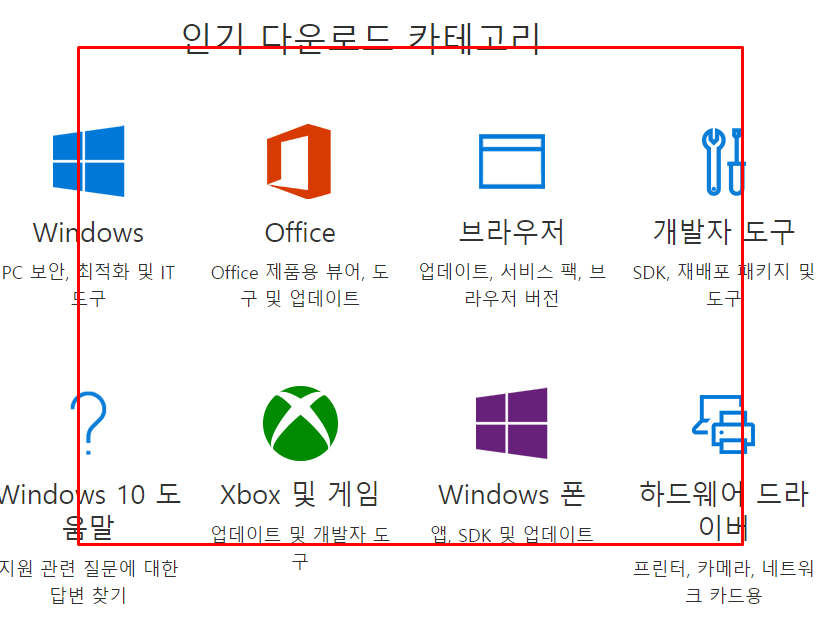 사이트 설명에서도 확인한 것과 같이 마이크로소프트사에서 제작 지원하는 대부분의 프로그램 및 기기의 정보와 파일을 제공하고 있습니다. 다양한 기능을 빠르게 찾을 수 있는 검색 기능과 더불어, 사람들에기 인기 있는 카테고리를 모아서 보여주고 있기도 합니다.
