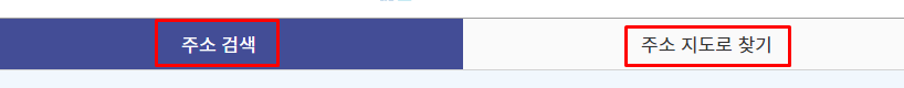 검색을 위해 기본적으로 어떤 정보를 이용해 찾기를 진행할 것인지 선택하게 됩니다. 정확한 주소 정보를 알고 있다면 주소검색을 이용하면 됩니다. 반면, 정확한 주소를 모른다면 지도를 이용하면 도움이 될 수 있습니다.