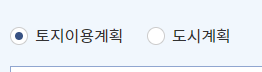 원하는 정보가 어떤 것인지 선택할 수 있습니다. '토지이용계획' 또는 '도시계획'에 대한 항목을 선택할 수 있습니다.