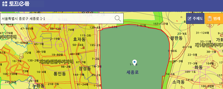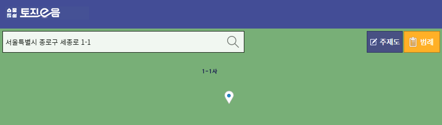 모든 양식을 정확하게 기입했다면, 아래에 있는 [열람]버튼을 선택합니다. 주소지가 정확하다면 해당 정보를 확인할 수 있습니다. 반면, 주소지가 정확하지 않다면 필지를 찾을 수 없다는 메시지와 함께 다시 확인할 필요가 있습니다.