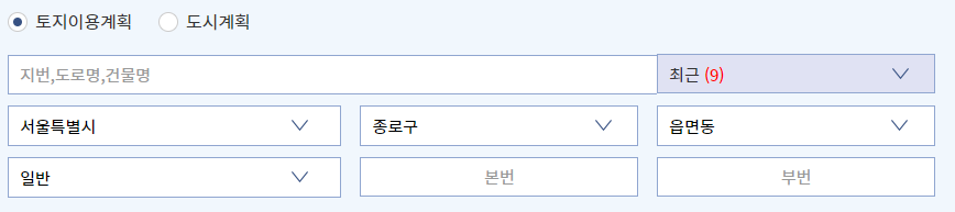 b. 토지이용계획 or 도시계획 선택
