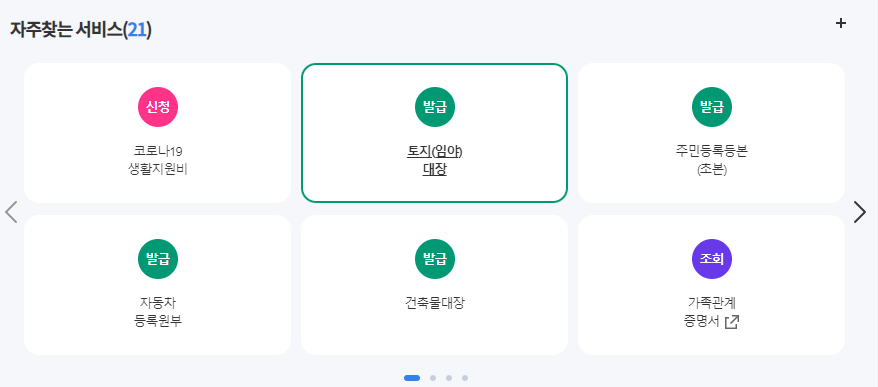 2. 정부 24 홈페이지에서 토지대장 기능 찾기